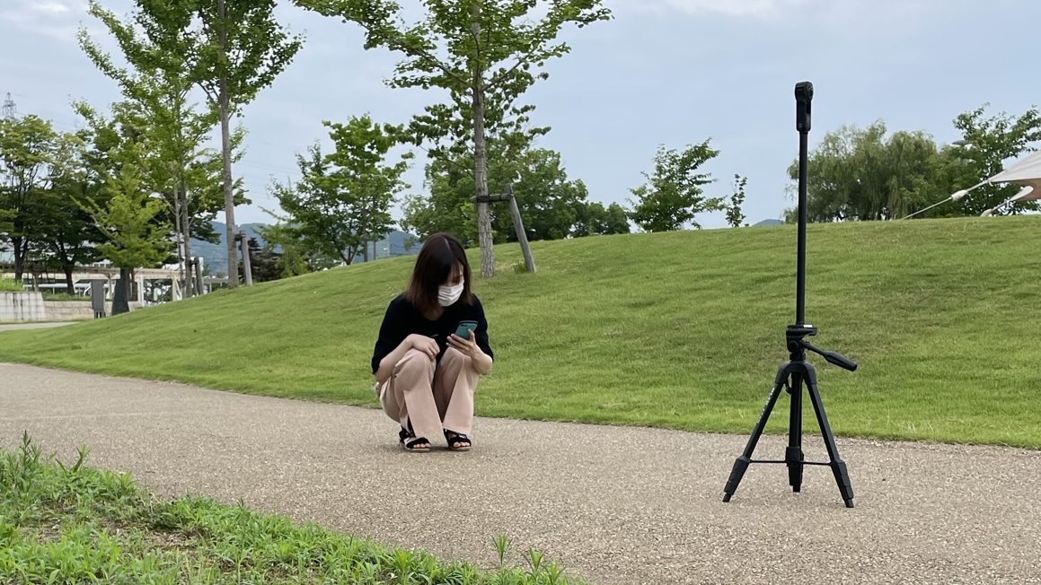 撮影方法としては、Insta360 ONE R(インスタ360 ワン アール)という360度カメラを三脚に固定して、だるまちゃん広場内を何度も移動して撮影しました。また、だるまちゃん広場上空は、ドローンを使用して撮影しました。